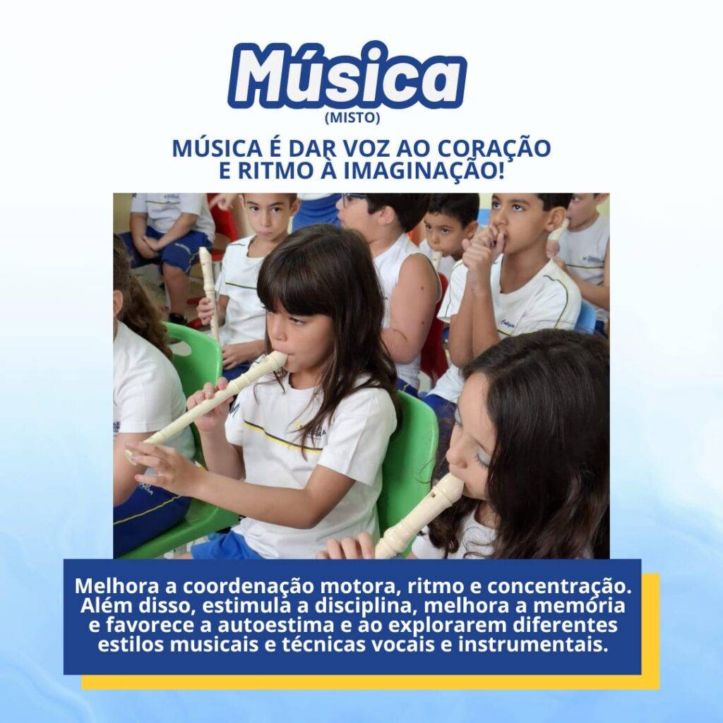 ✅ Música – estimula a concentração, disciplina e sensibilidade