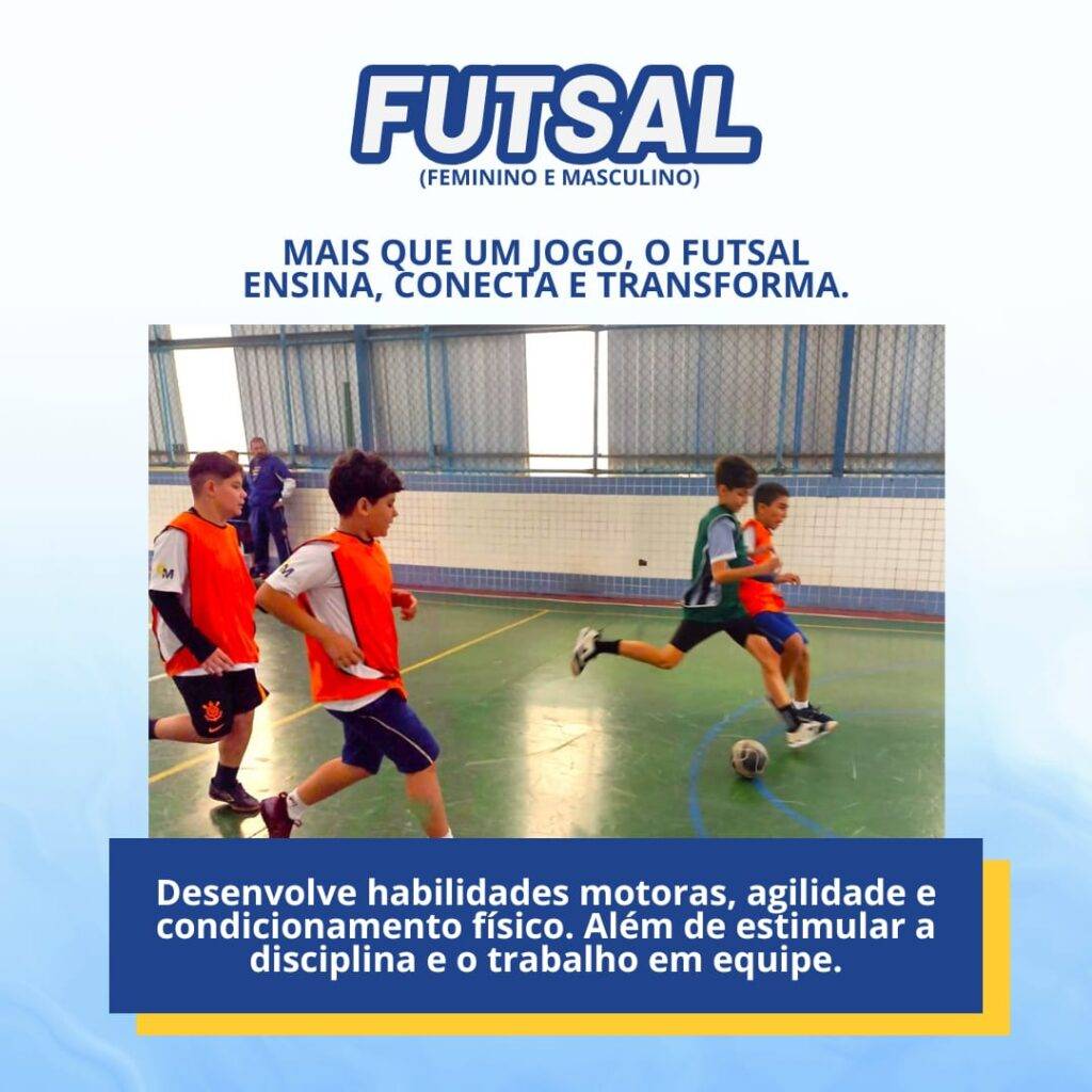 ✅ Futsal – trabalha o espírito de equipe e coordenação motora