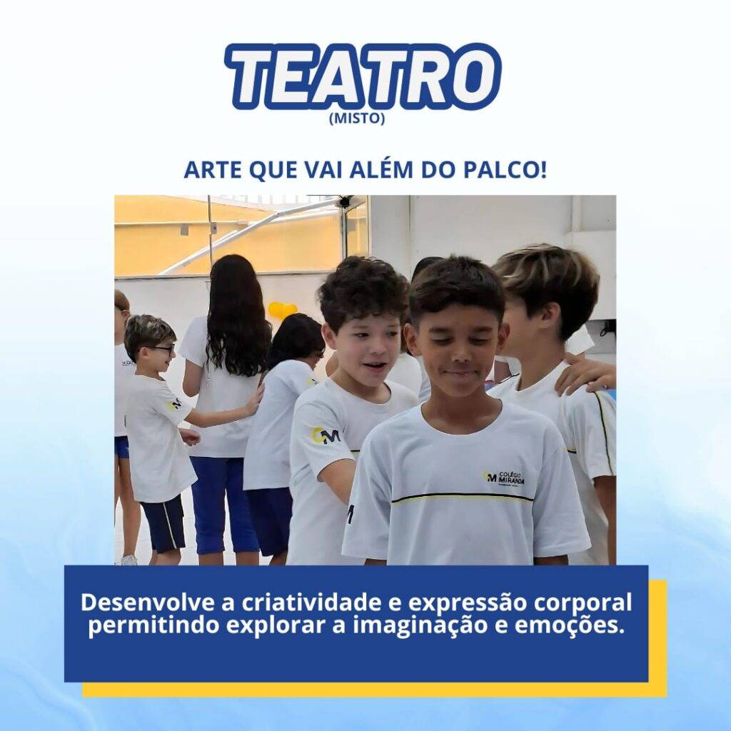 ✅ Teatro – desenvolve expressão, criatividade e autoconfiança